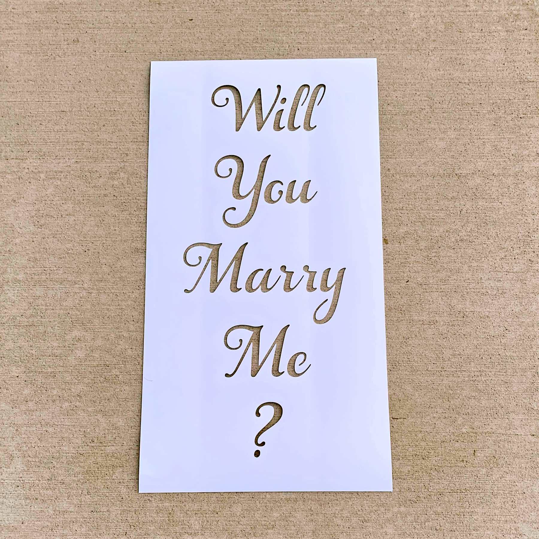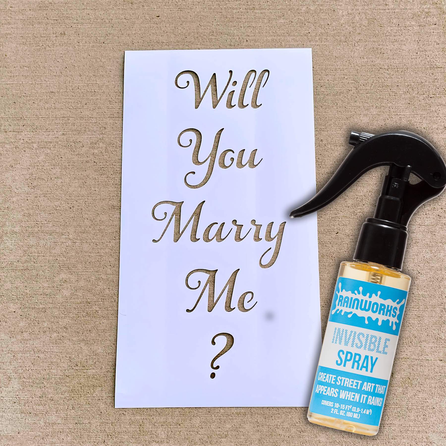 Durable “Will You Marry Me” stencil for making rainworks or spray paint projects.