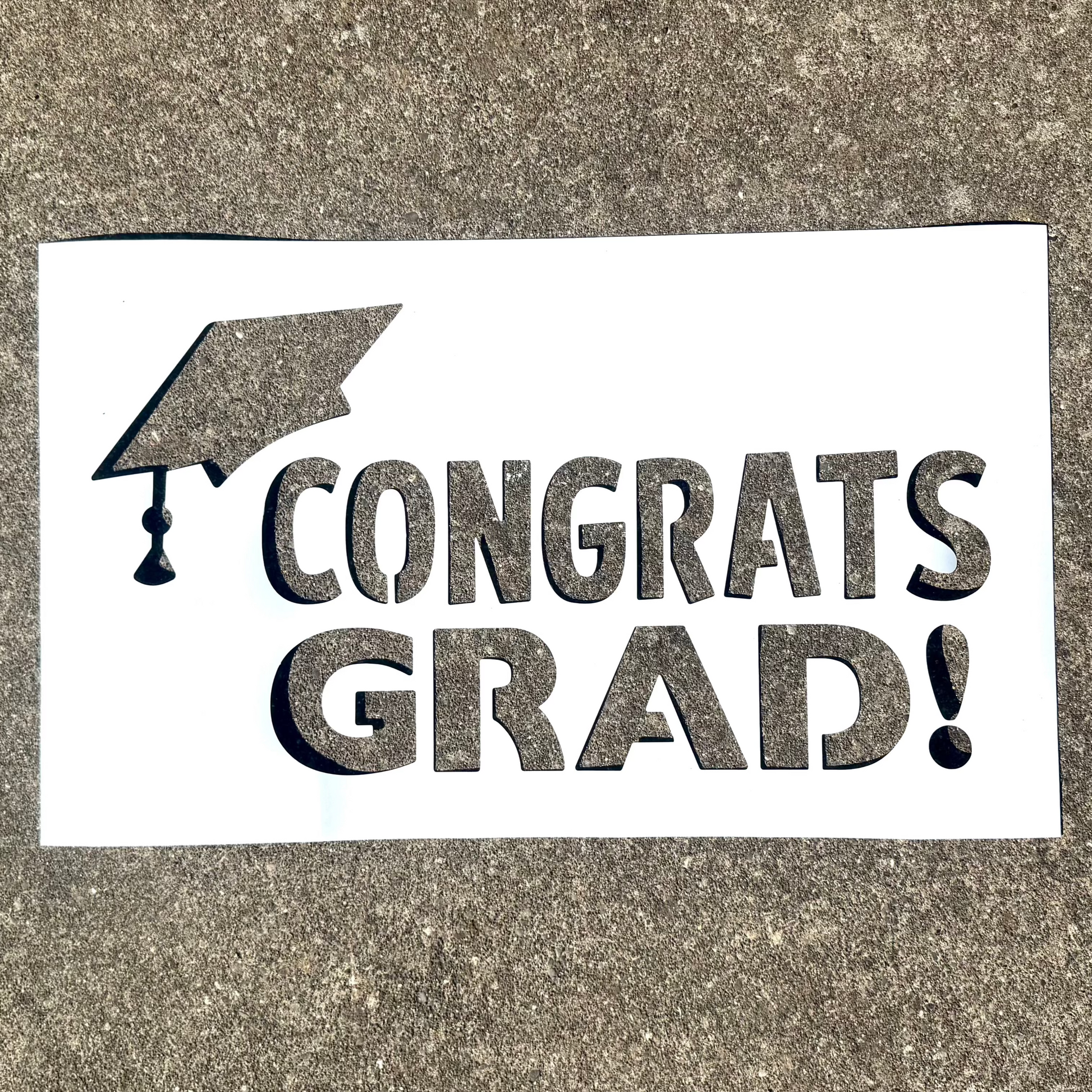 "Congrats Grad!" PopOut Stencil for making Rainworks or spray paint projects.